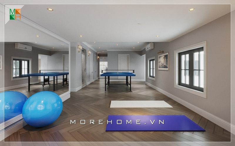 Phòng tập thể dục hiện đại tiện nghi trong thiết kế nhà phố là lựa chọn đầu tư hoàn hảo cho sức khỏe của các thành viên trong gia đình.