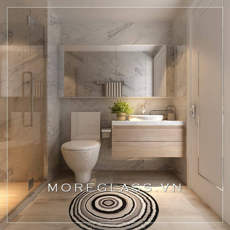 Gia chủ thường ưu tiên và hướng đến mẫu phòng vệ sinh nhỏ có diện tích 3m2 đẹp và kết hợp phòng tắm kính đẹp gam màu trắng xám tính tế.