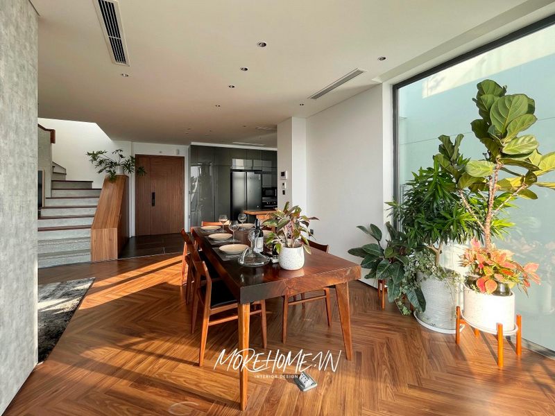 Bên cạnh đó, việc sử dụng ánh sáng tự nhiên cũng là yếu tố then chốt để làm bừng sáng ngôi nhà của bạn. Những cửa sổ lớn hay các vách kính giúp mở rộng tầm nhìn và mang lại cảm giác thoải mái cho mọi người trong gia đình. Thêm vào đó, các chi tiết nhỏ như cây xanh hay tác phẩm nghệ thuật độc đáo có thể giúp gia tăng tính thẩm mỹ cho không gian sống, mang lại luồng không khí mới mẻ và sống động.