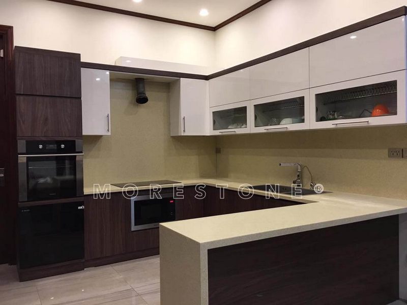 Để tạo ra một không gian bếp sang trọng như vậy, thiết kế và thi công phải được lựa chọn cẩn thận. Thi công nội thất bếp bằng đá ốp Himacs màu vàng sẽ góp phần tạo nên một không gian bếp đẳng cấp, độc đáo cho các căn hộ, nhà phố, biệt thự.